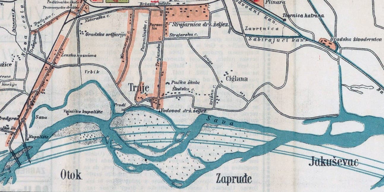 Trnje na planu grada iz 1920., na Savici se vidi natpis “Ciglana”. [VR 2026.]