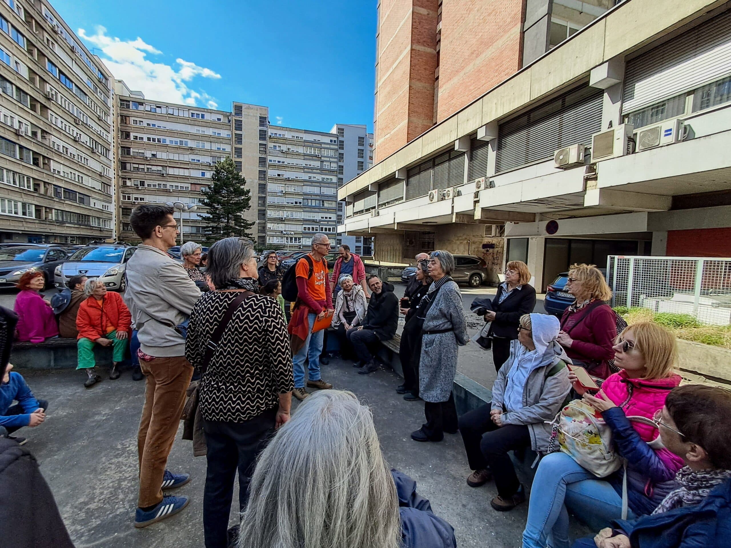 ![Razgovor o počecima gradnje stambenih zgrada Savice - u pozadini jedna od dvaju zgrada Miljacke ulice. [SM 2026.]](https://mapiranjekvarta.hr/wp-content/uploads/2026/03/20260314_104558-scaled.jpg)