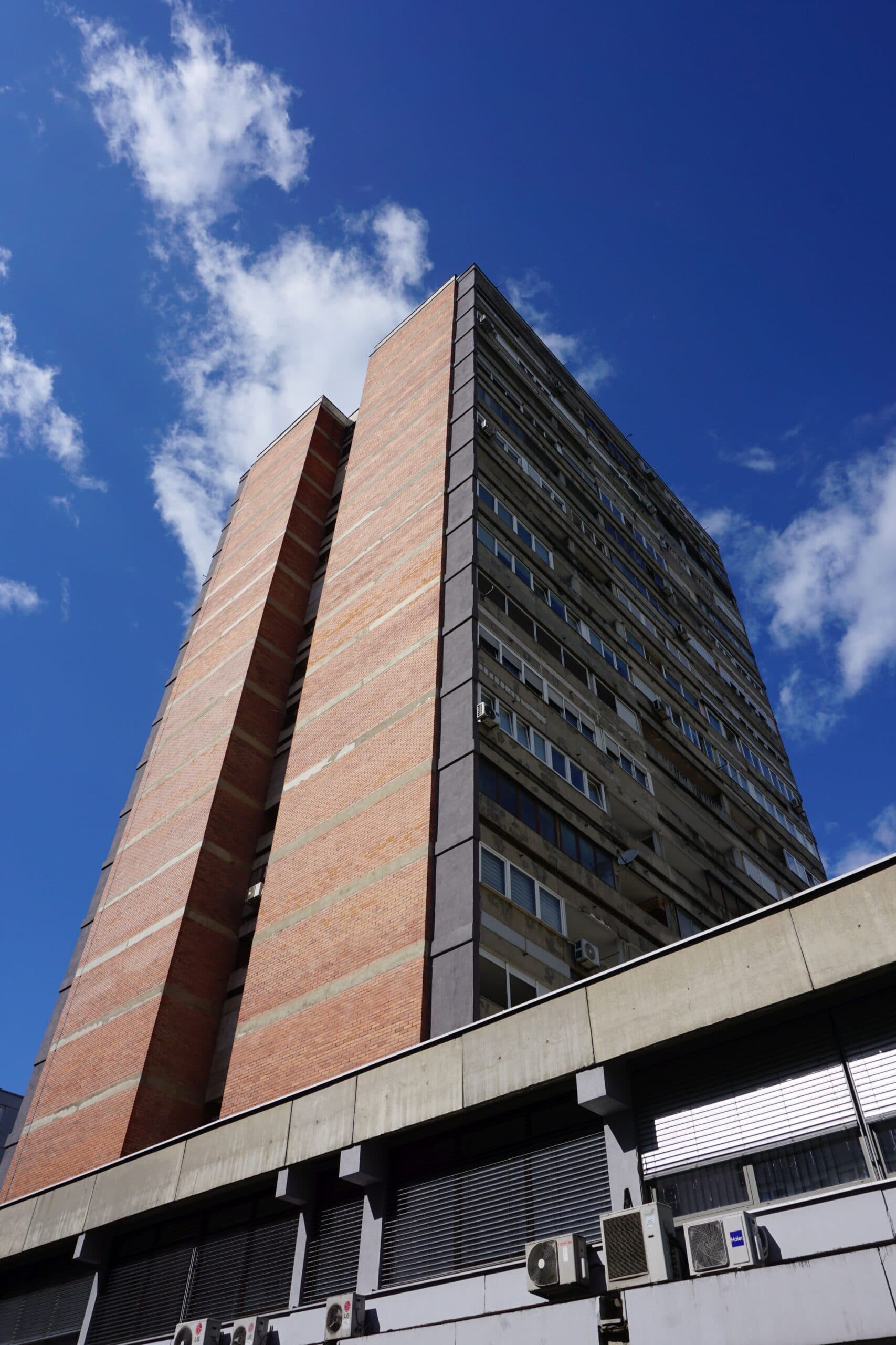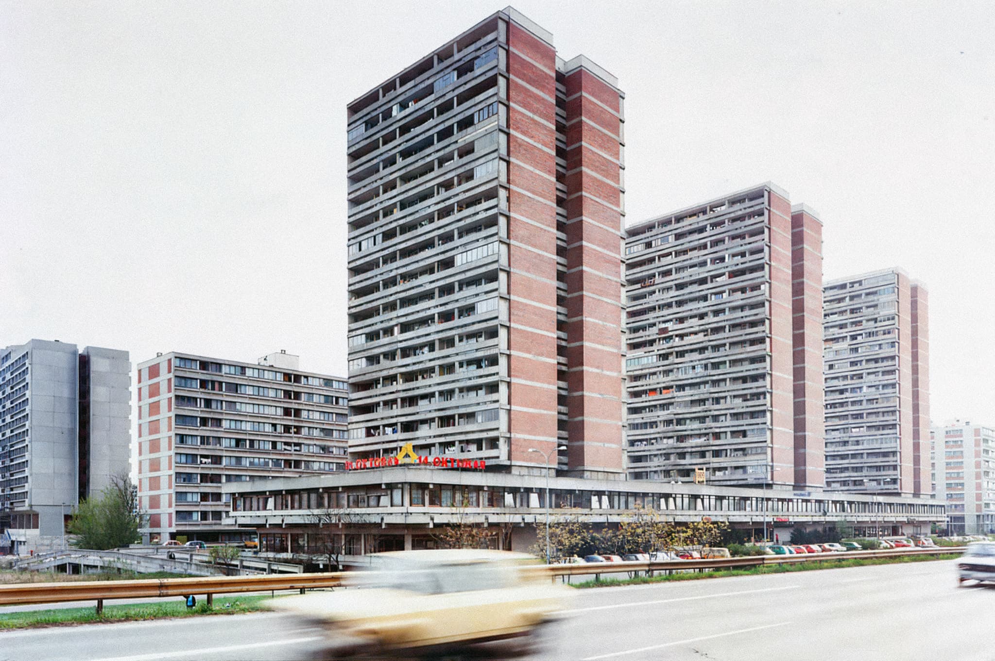 Razgovor o počecima gradnje stambenih zgrada Savice – u pozadini jedna od dvaju zgrada Miljacke ulice. [SM 2026.]