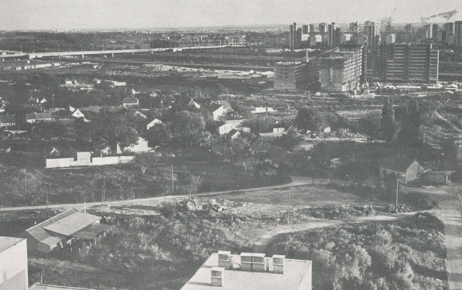 Prostor Savice gledan prema jugu, otprilike linijom Ulice Vladimira Ruždjaka, desno su Nove Kruge. Snimljeno oko 1970. [FB-ZG 2026.]