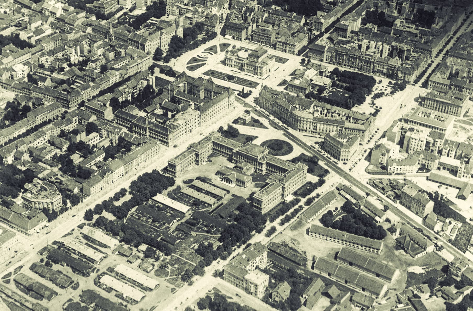 “Godine 1926. Edo Šen, rektor i profesor Tehničkog fakulteta, izradio je prvu skicu fakultetskog kompleksa kao podlogu zahtjeva za ustup zemljišta. Grad je svoje zemljište ustupio besplatno, a vlada samo dio, zato što je nakon uklanjanja baraka željela obnoviti srednjoškolsko igralište. Projekt je potom povjeren arhitektu Hugi Ehrlichu, profesoru Tehničkog fakulteta, koji ga je izradio 1928. godine. Šest dvokatnih zgrada za šest odjela fakulteta, poredanih duž Klaićeve i Ulice Kršnjavoga spaja zgradom velikog strojarskog laboratorija, a u začelju monumentalnom zgradom dekanata. Izgrađena površina iznosila bi 40.000 m². Izgradnja bi se realizirala etapno. Kompozicija bloka podsjeća Ehrlichova monografa Žarka Domljana na engleske sveučilišne kampuse, dok arhitektura zgrada već nosi obilježja funkcionalizma. No, budući da je izostala vladina financijska potpora, gradnja se oteže, a i grad smanjuje ustupljenu površinu. Napokon, Ministarstvo financija oduzima Tehničkom fakultetu cijelo vladino zemljište i daje ga 1929. godine na raspolaganje Ministarstvu socijalne politike za rješenje nagomilanih socijalnih problema. Dio programa povezan je sa Ciglanom, gdje bi se gradila zgrada za središnje institucije socijalne politike: Javnu burzu rada, Radničku komoru i Iseljenički komesarijat. No, prethodno treba riješiti socijalni problem Ciglane, “legla nečisti i tuberkuloze”, gdje u barakama živi 297 obitelji sa 315 djece (ukupno 710 osoba). Za tadašnje žitelje Ciglane sagradila bi se naselja u različitim predjelima grada, poglavito na periferiji, a barake bi se poslije njihova iseljenja uklonile. Grad podržava taj program i oduzima Tehničkom fakultetu dio darovanog zemljišta.”