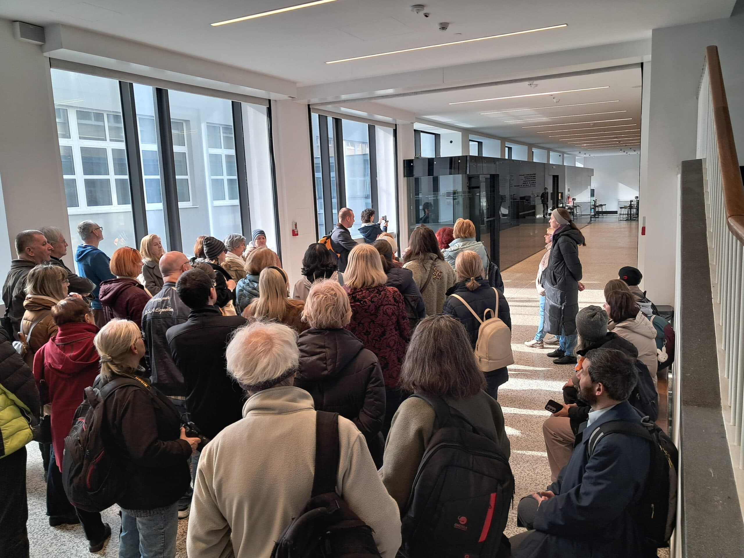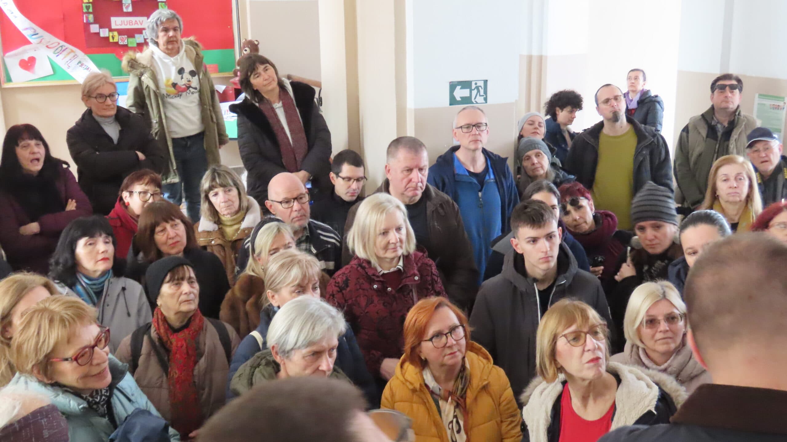 Pogled na pratitelje posjeta u predvorju Osnovne škole Izidora Kršnjavog. [BT 2026.]