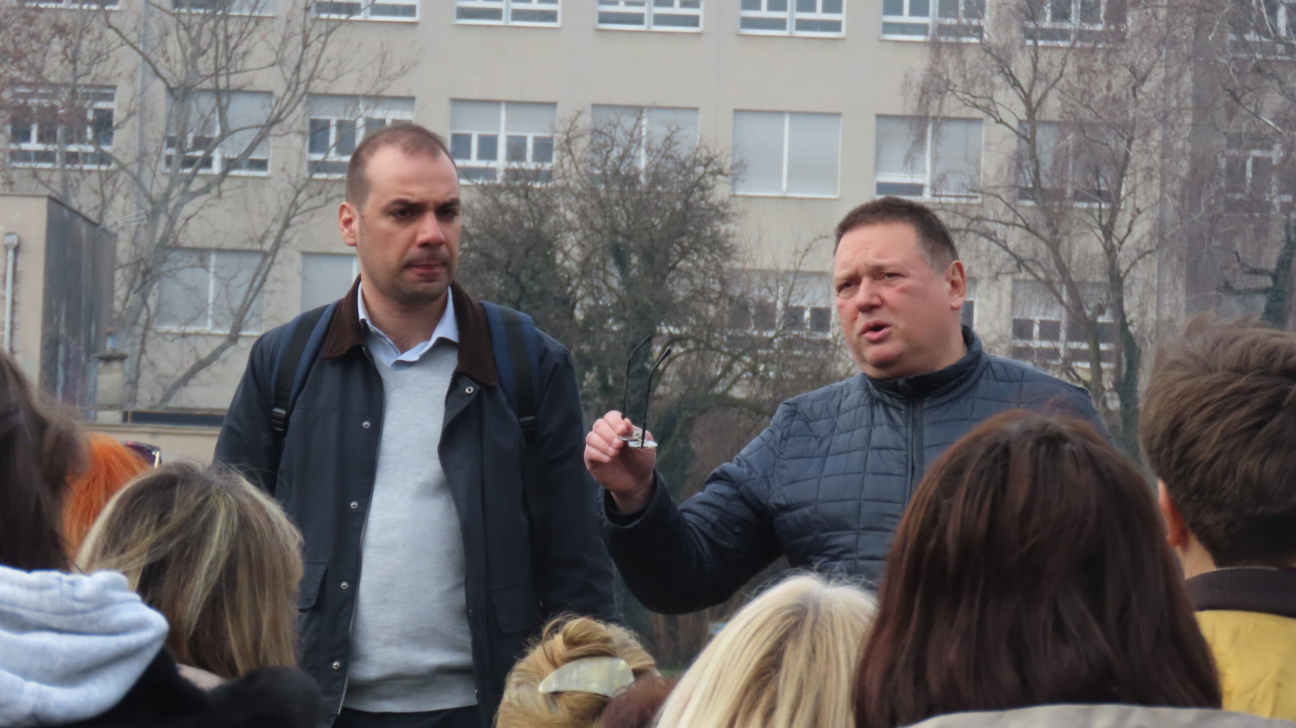 Šetači napuštaju igralište na putu za zgradu AGG fakulteta. [BT 2026.]