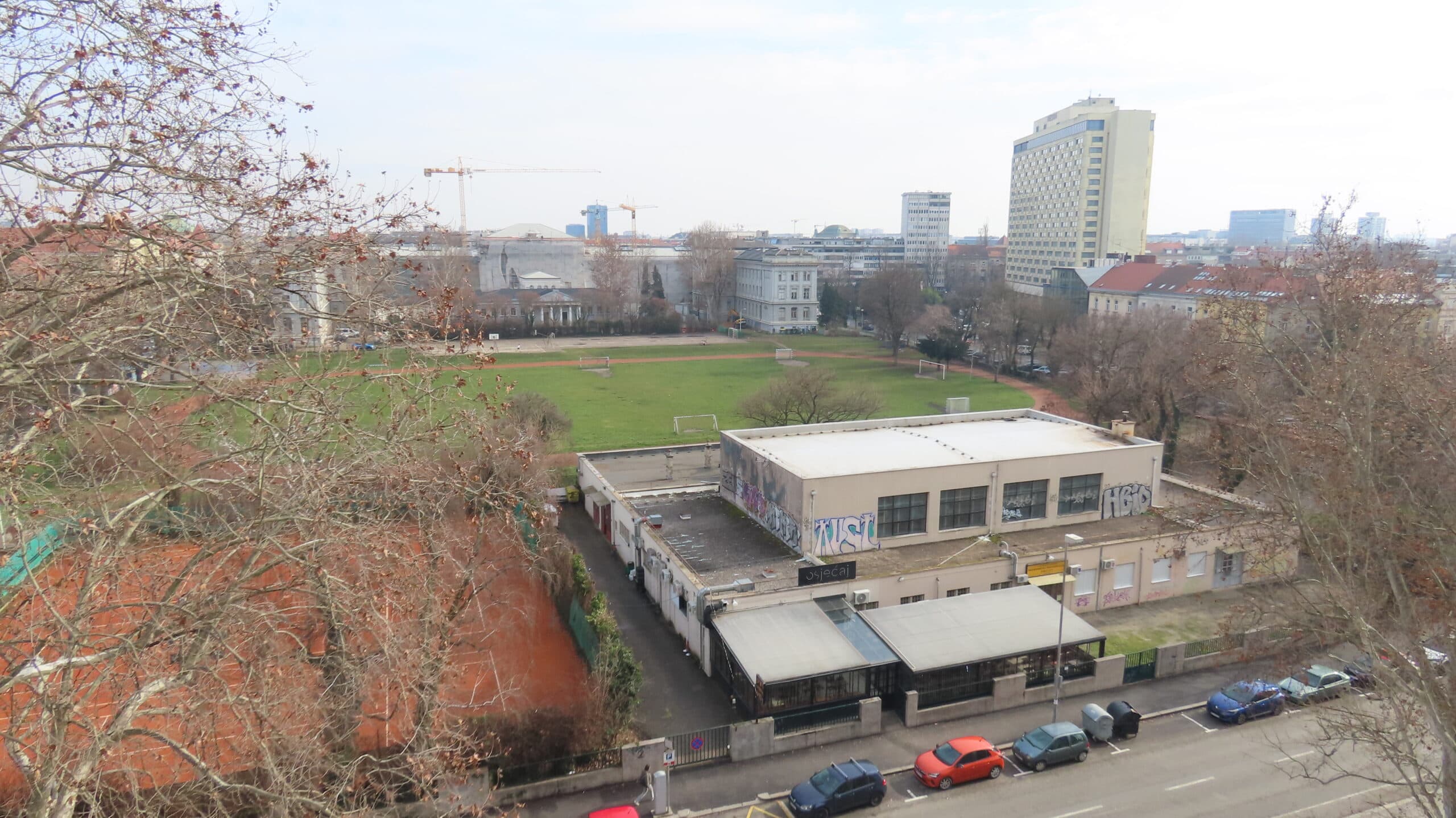 Srednjoškolsko igralište gledano iz kabineta za zemljopis Osnovne škole Izidor Kršnjavi. [VK 2026.]